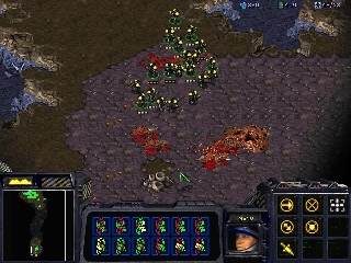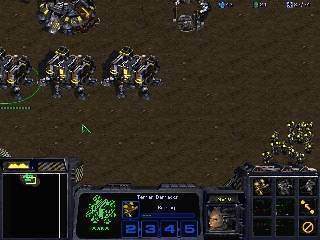 私のStarcraftのページの下らないタイトルの由来にもなっている攻撃方法です。少なくともCPUのZergとProtoss相手にChallenger.scmで対戦すれば、うまく行けば1回、悪くても3回のシャブMarine RUSHで大体落とせます。人間相手の時と、CPU Terran相手では成功確率が低いです。